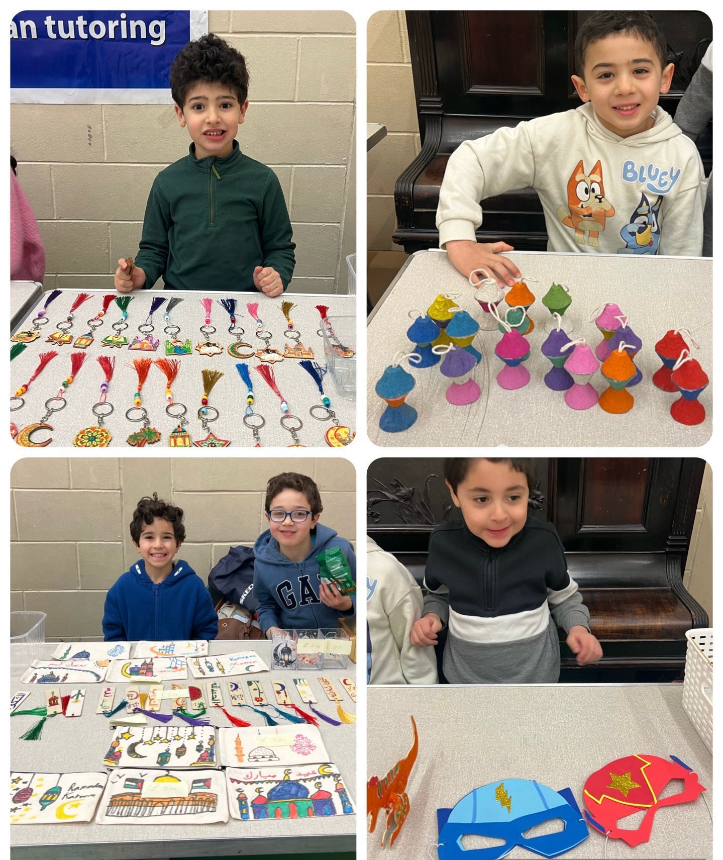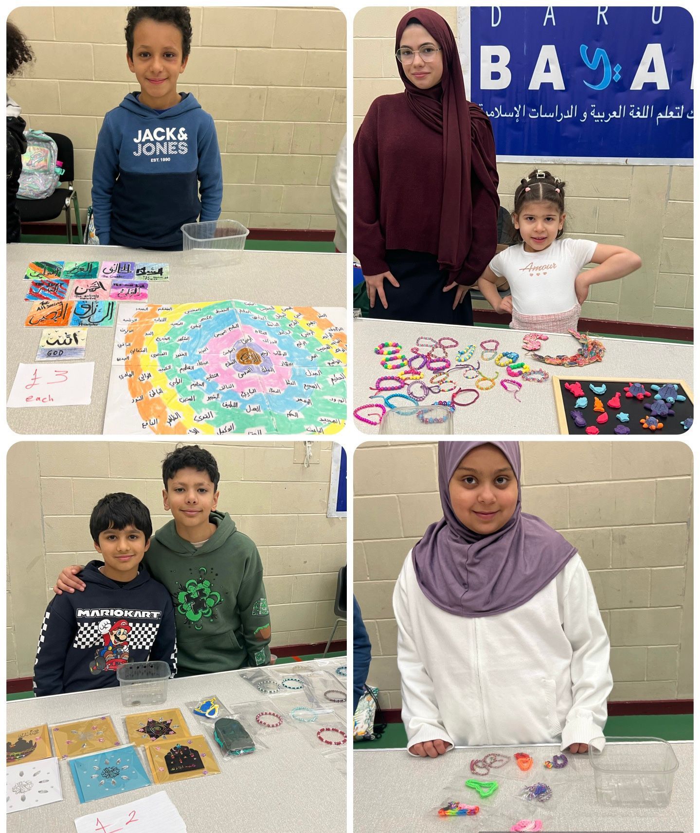 The range and quality of the artwork on display were very impressive. Our students put so much effort into creating a wide selection of handmade pieces. From carefully painted wooden keychains with mosques and crescents, to beautiful bookmarks decorated with Arabic calligraphy, every item showed great attention to detail. It was especially touching to see how many students used their Islamic studies and Arabic skills in their creations, bringing together their learning, imagination, and faith.